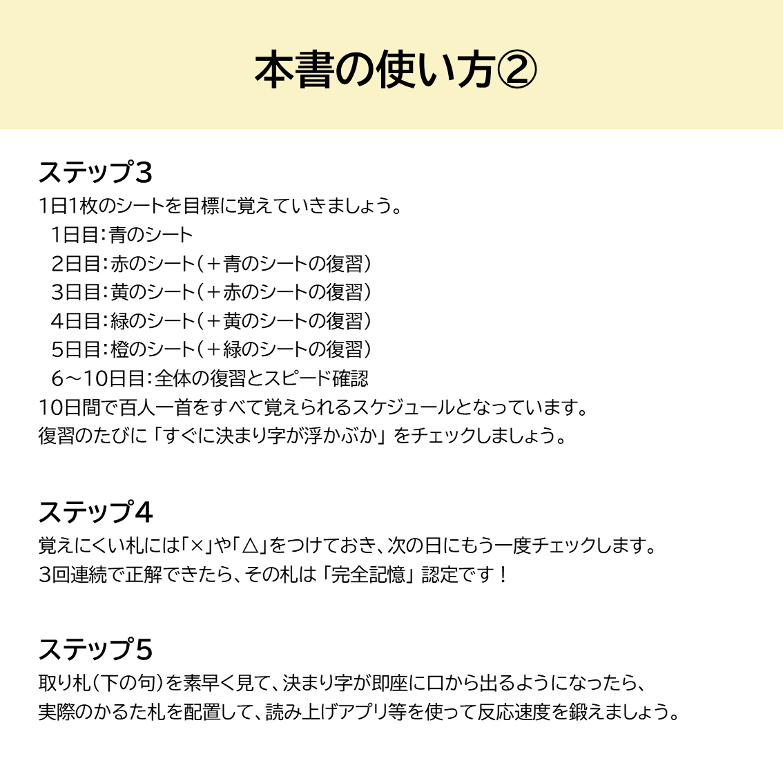 全100首を20首ずつにわけて、全5枚のシートに収録しています。